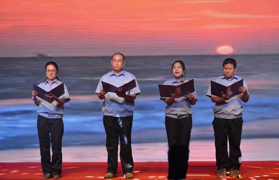 活动以集团公司百名员工共唱《我和我的祖国》快闪视频的播放开场,按“不忘初心担使命”、“勇立潮头搏激流”、“同心逐梦谱新篇”、“砥砺奋进铸辉煌”四个篇章依次展开。一首首满怀深情的赞歌重现伟大祖国浩瀚进程中的历史瞬间、描绘出辽阔土地上的锦绣山河、传递着中航建设人的自豪之情、展示出未来美好的幸福景象。一个个满怀深情的朗诵者相继登场,将中航建设锐意进取,志存高远的精神贯穿始终。演出中,千亿手机站·网站官网-千亿(中国)的发展成就得以展示,中航建设工作者的人文情怀得到抒发,台下观众沉浸在对中航建设的热爱和为祖国庆生的喜悦之情当中。