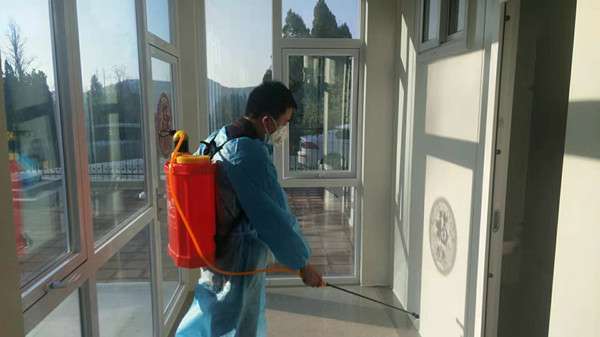 (项目办公区进行消毒防疫)