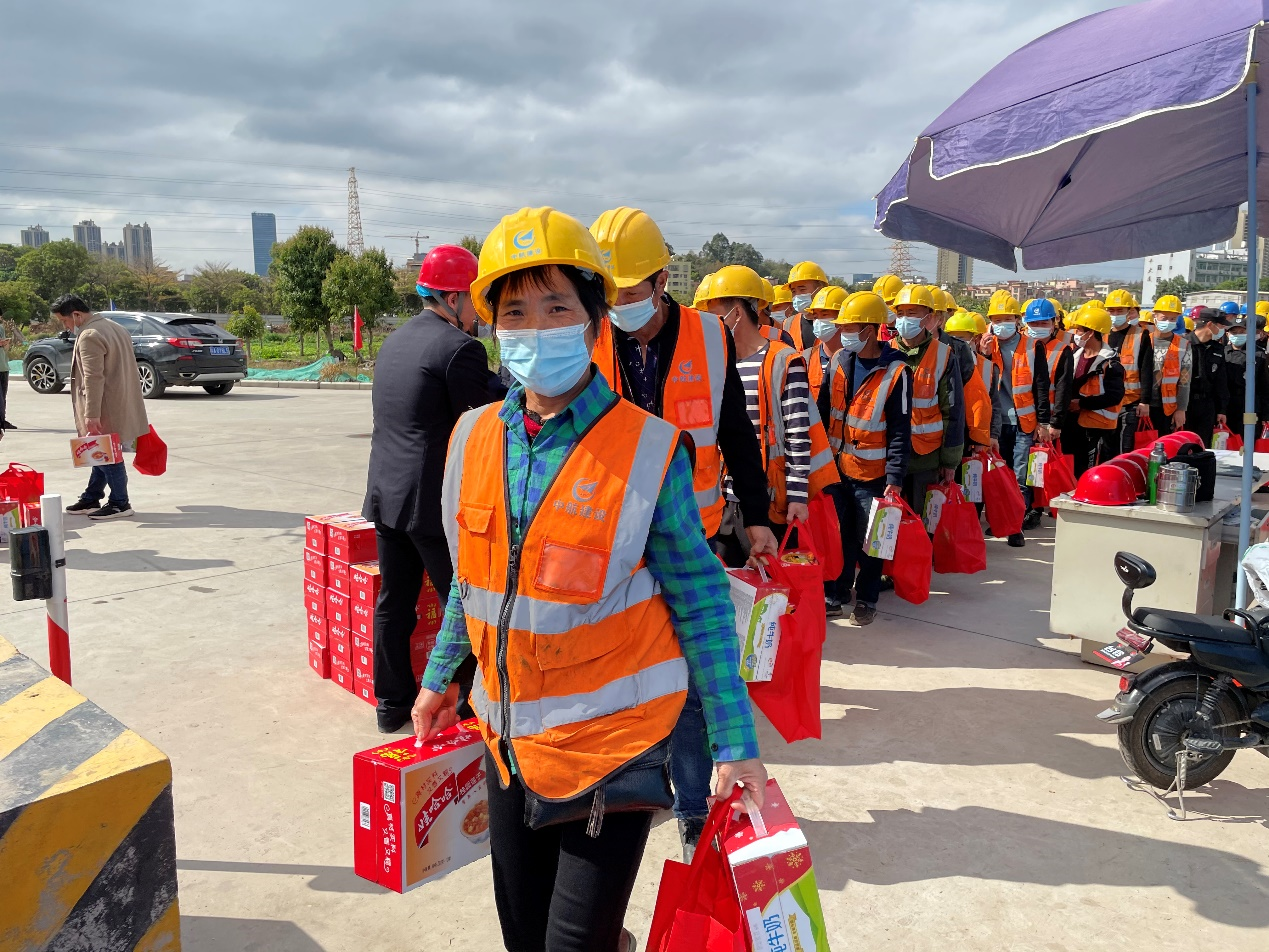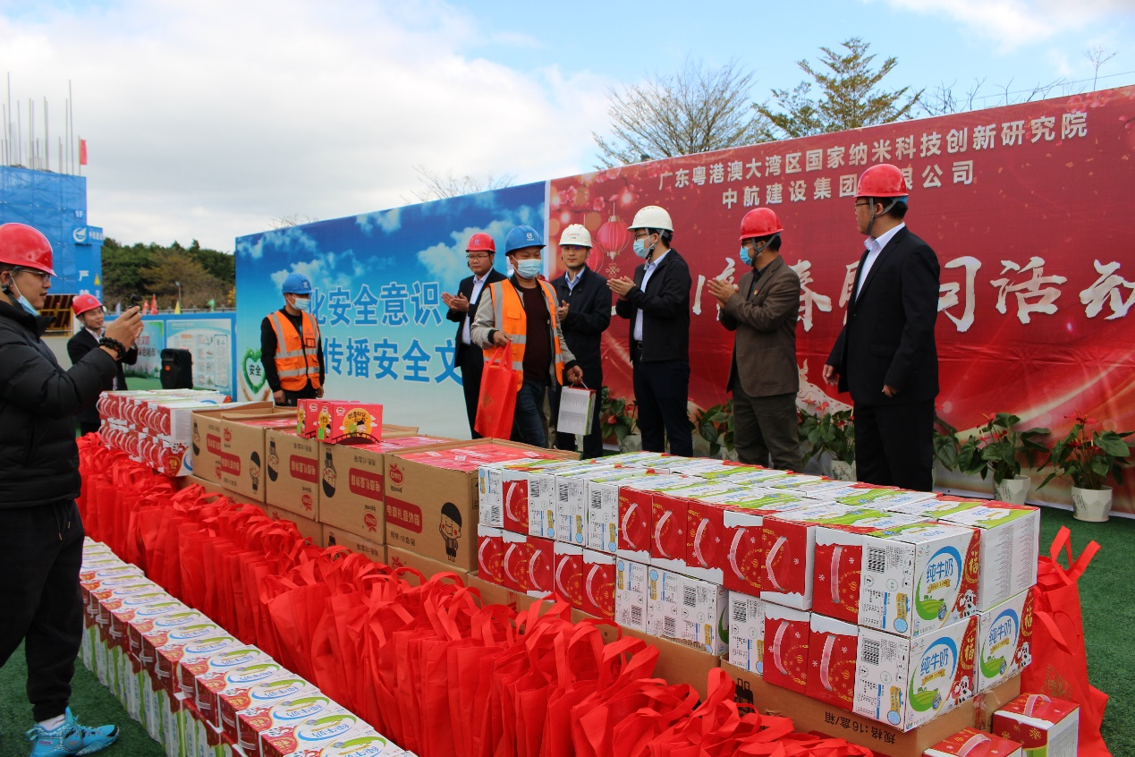 大年三十闹新春,生产一线迎新年。为响应地方政府“留穗过年”的号召,2021年2月11日,千亿手机站·网站官网-千亿(中国)南方工程有限公司联合广州市黄埔区鱼珠街道办事处、广州纳米产业投资有限公司、广州珠江工程建设监理有限公司,组织开展“2021新春慰问活动”。