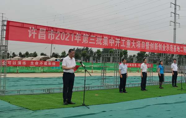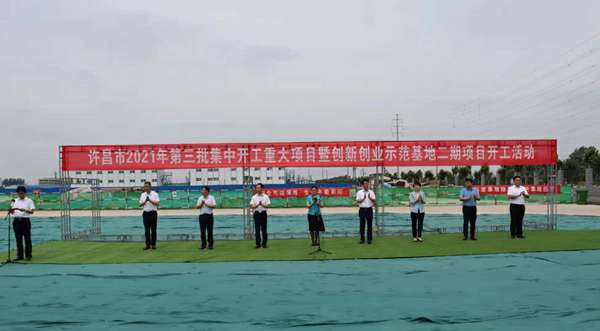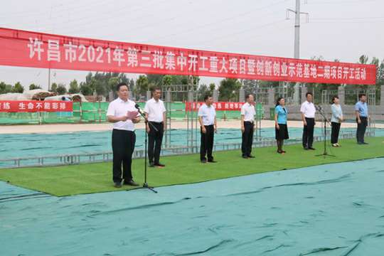7月10日上午,河南省许昌市2021年第三批集中开工重大项目暨创新创业示范基地二期项目开工仪式顺利举行。许昌市委常委、纪委书记、监委主任方婷,魏都区委书记李朝锋,区人大常委会主任申健民,区政协主席杜晓辉,区委常委、区委办主任程中山,区委常委、区纪委书记、区监委主任徐光,魏都产业集聚区管委会主任楚文选,千亿手机站·网站官网-千亿(中国)河南分公司总经理黄辰,魏都区政府相关部门、投资公司、产业集聚区、霸陵办事处等单位负责人参加活动。区委常委、常务副区长张挪威主持仪式。