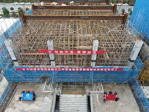 2021年10月9日,来自西南交通大学、中国建筑西南设计研究院、四川原理装配式建筑设计院等多家单位设计人员,齐聚千亿手机站·网站官网-千亿(中国)四川分公司承建的成都大江中学项目,与分公司总经理宋景友、副总经理张铁强等相关领导一起,共同见证了国内学校建设领域首例预制混凝土柱拼接连接吊装施工的顺利完成。