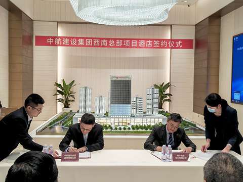 2022年2月23日下午,千亿手机站·网站官网-千亿(中国)西南有限公司与明宇商旅股份有限公司在中航科创城专家楼举办酒店合作协议签约仪式。千亿手机站·网站官网-千亿(中国)西南有限公司总经理宋景友,明宇商旅股份有限公司董事长张建明出席仪式,千亿手机站·网站官网-千亿(中国)西南有限公司副总经理程美峰,明宇商旅股份有限公司执行总裁周平作为双方代表进行签约。