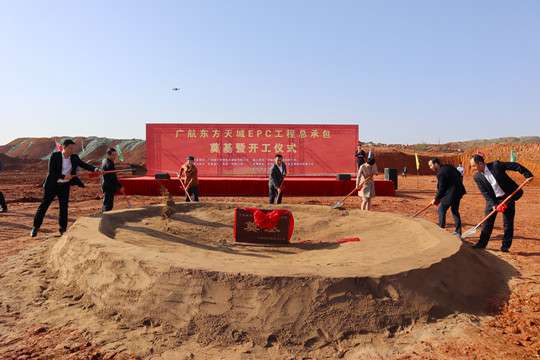 3月8日上午,由千亿手机站·网站官网-千亿(中国)参与投资并承建的广航东方天城EPC工程总承包项目奠基暨开工仪式在广西壮族自治区南宁市圆满举行。广西数字经济生态产业有限公司执行总裁农健、广西南宁晟宁资产经营投资有限公司总工程师潘丽华、广西数字经济生态建设有限公司总经理周方一、华蓝设计(集团)有限公司设计研究院总建筑师覃琳琳及集团公司广西分公司副总经理刘文月出席仪式。